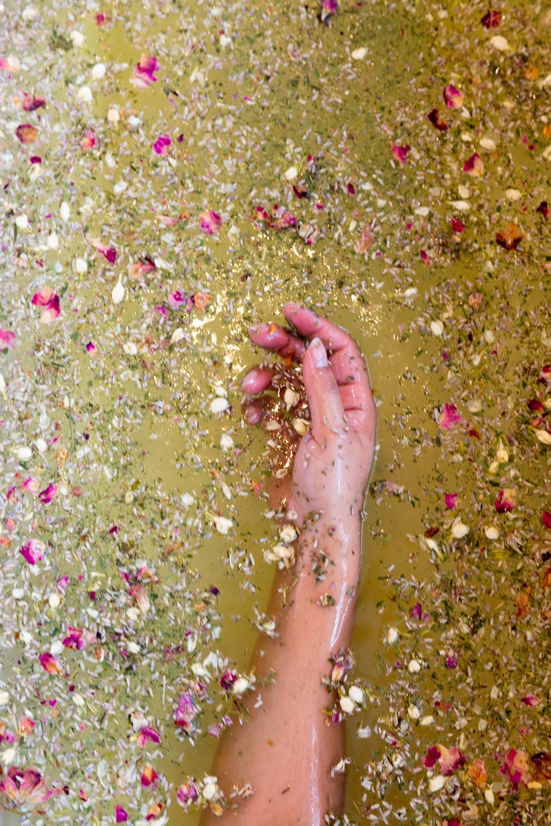 2. Open the bag and release all botanicals for a beautiful loose leaf bath experience
