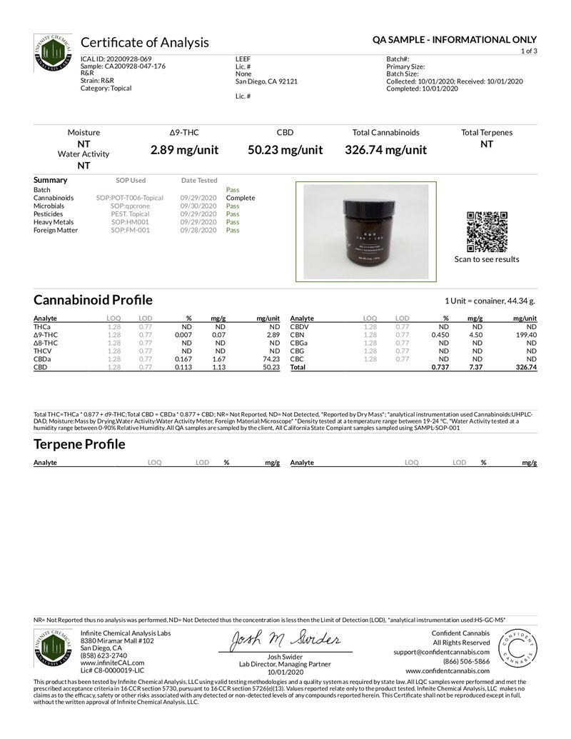 Butyrospermum Parkii (Shea Butter), Persia Gratissima (Avocado Oil), Chamaemelum Nobile (Chamomile), Geranium Maculatum (Spotted Cranesbill), Eleutherococcus Senticosus (Eleuthero Root), Paeonia Lactiflora (Peony), Cananga Odorata (Ylang ylang) Flower Oil, Jasminum Officinale (Jasmine) Flower Oil, Candelilla Wax (Euphorbia Cerifera), Whole Plant Cannabidiol (CBD) Extract, Cannabinol (CBN) Extract
